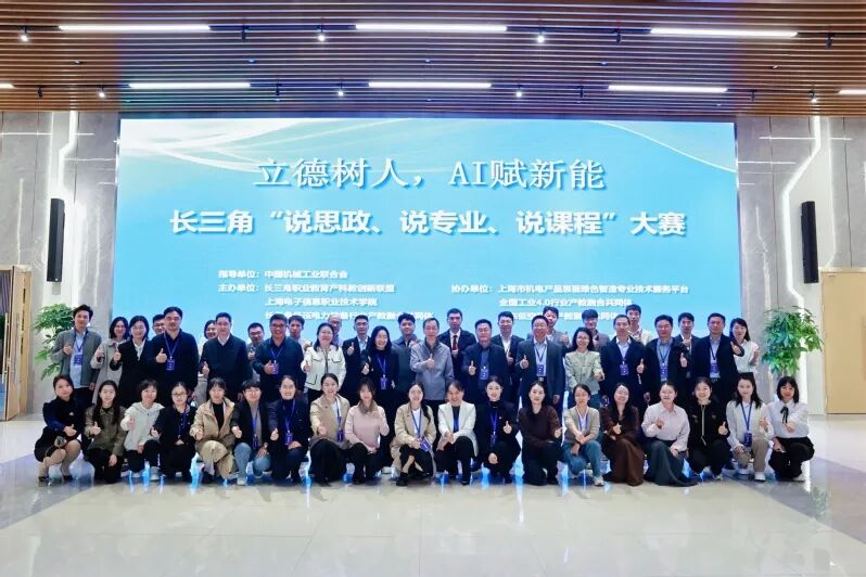 本次大赛由中国机械工业联合会指导,长三角职业教育产科教创新联盟、上海电子信息职业技术学院、长三角低压电力装备行业产教融合共同体牵头主办,上海市机电产品表面绿色智造专业技术服务平台、全国工业4.0 行业产教融合共同体、华东低空经济产教融合共同体等单位联合协办。大赛以“立德树人”为根本任务,以“AI 赋新能”为创新路径,聚焦人工智能技术与教育教学的深度融合。通过“说思政、说专业、说课程”三大赛项,推动思政教育、专业建设与课程改革的智能化升级,探索AI 赋能教育创新的新范式,为培养兼具家国情怀与技术素养的新时代人才提供实践平台。赛事吸引了南京工业职业技术大学、常州机电职业技术学院等三十多所高职院校的教师参赛,评委阵容更是汇聚了高校、学界与企业多方权威力量。