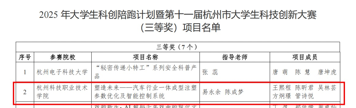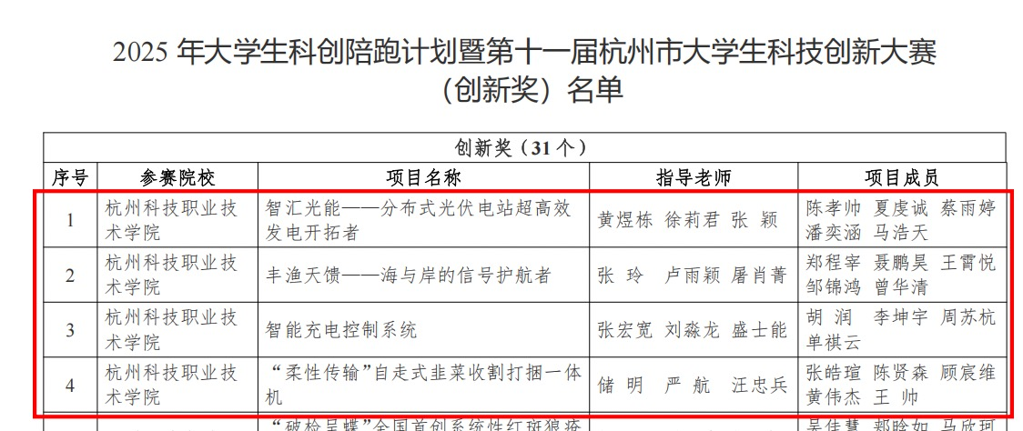我校在本届杭州市大学生科技创新大赛中的卓越表现,是坚定贯彻浙江省委“两篇大文章”战略部署,以科技创新驱动发展,以高质量人才培养助力共同富裕的生动实践。通过深化产教融合、校企协同,学校不仅为国家海洋强国战略和海防装备智能化升级贡献了杭科智慧与力量,更为高职院校依托地方产业、服务国家战略、培养时代新人,提供了可资借鉴的创新范式,有力推动了区域人才链与产业链、创新链的深度融合与高质量发展。