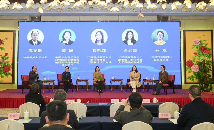 中国社会科学评价研究院职业高等院校期刊评价专家委员会主任谭旭、《职教论坛》主编肖称萍、《教育发展研究》编辑部主任林岚、《远程教育杂志》副主编岑红霞与我校校长温正胞五位专家,围绕 “AI背景下学习型城市高质量建设”主题举行了圆桌讨论。专家团紧扣AI技术的优势与挑战、教育领域AI应用研究选题等核心命题,从技术特性、实践适配、研究方向等多个维度展开深入研讨,在思想碰撞中凝聚共识,为新时代背景下以AI赋能学习型城市高质量发展提供了兼具针对性与可操作性的实践思路。