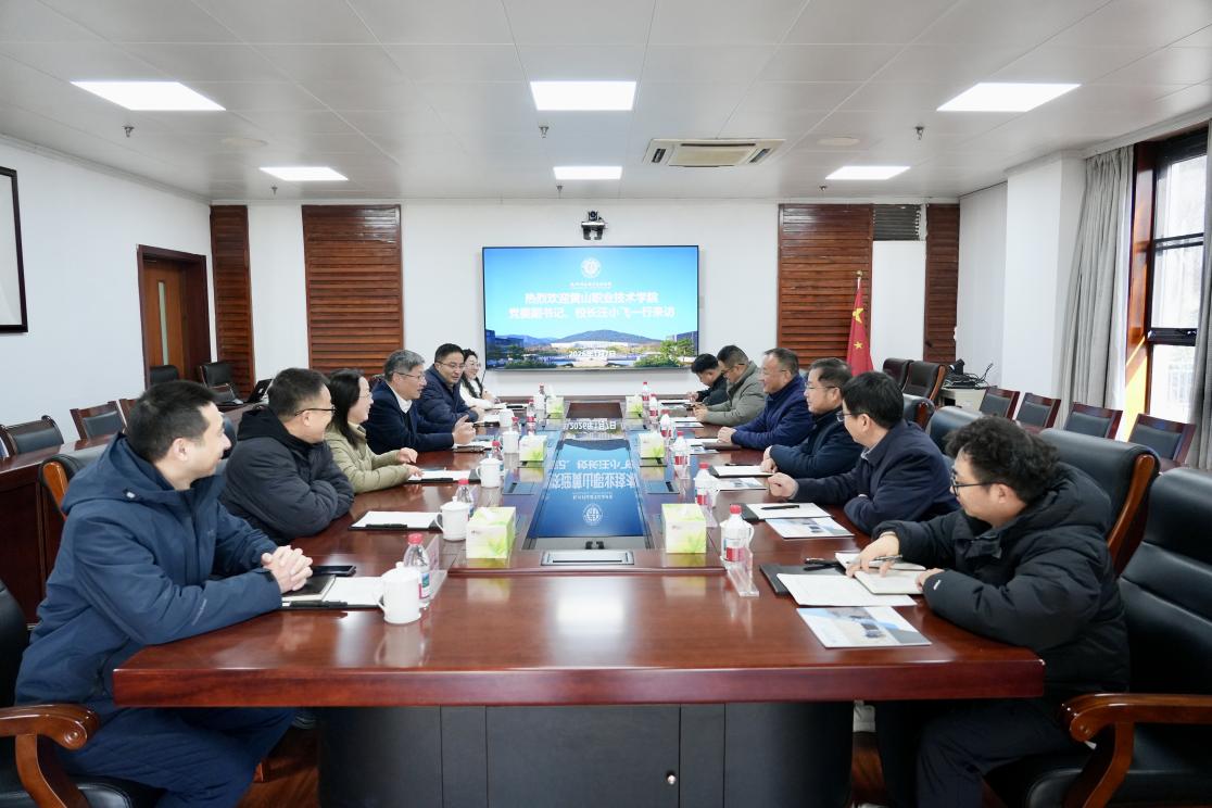 汪小飞对我校的热情接待表达诚挚谢意。他表示,黄山职业技术学院“十五五”期间将紧扣职业大学创建这一核心,强化内涵建设、深化产教融合,着力培养契合社会需求的高素质技术技能人才。同时,他回顾了两校建立战略合作关系以来取得的丰硕成果,期望未来双方能够继续携手同行,共同探索职业教育高质量发展的新路径。