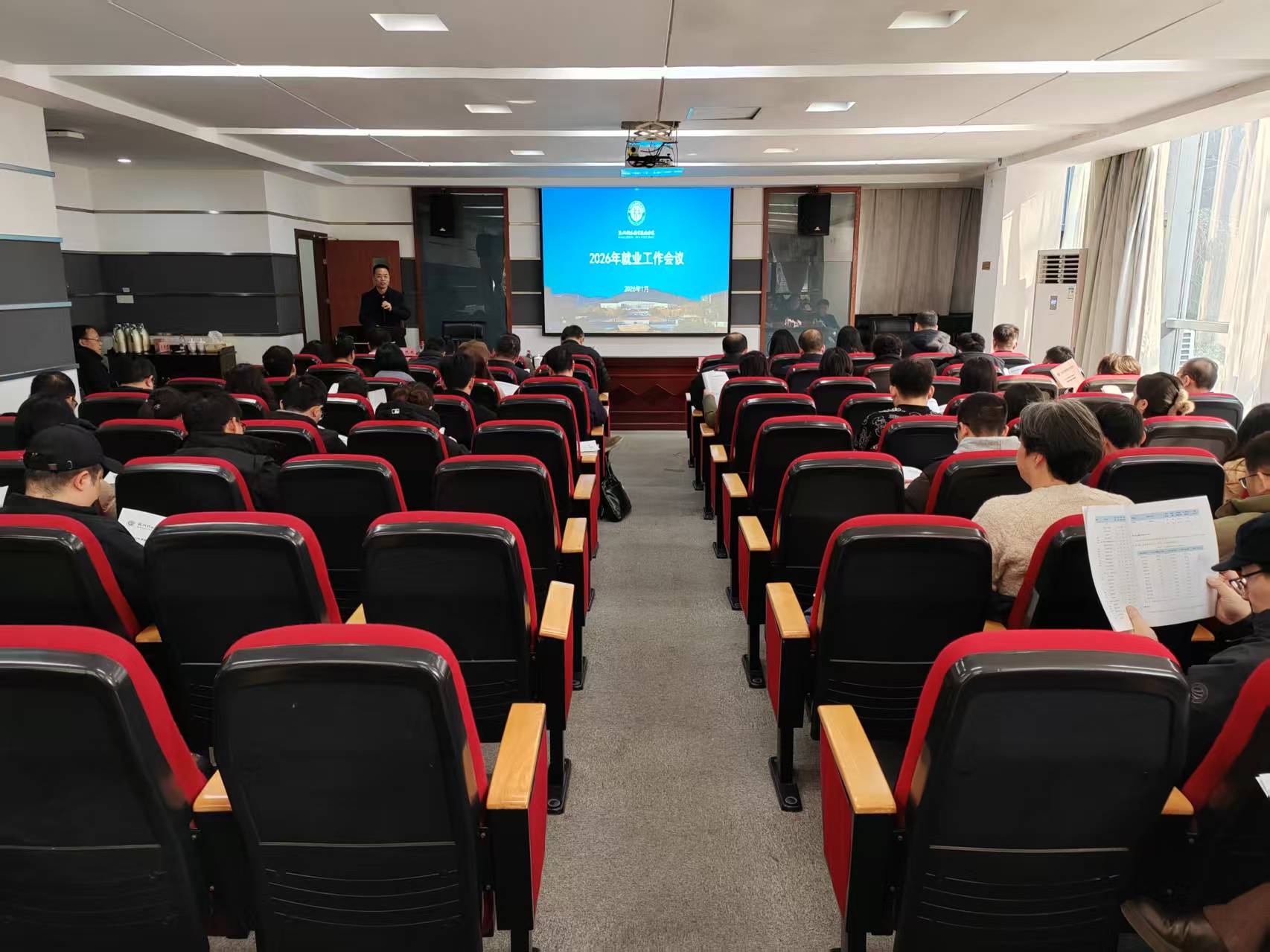 1月22日,学校召开2026年就业工作会议。党委书记范朝辉,党委委员、副校长赵悦林出席会议。发规处、教务处、学生处等部门负责人,各高职二级学院班子成员、各专业主任、学工办负责人、就业辅导员和招生就业处全体人员参加。