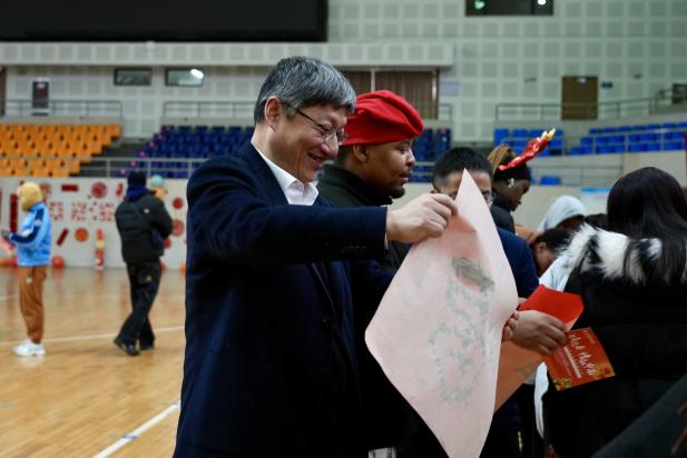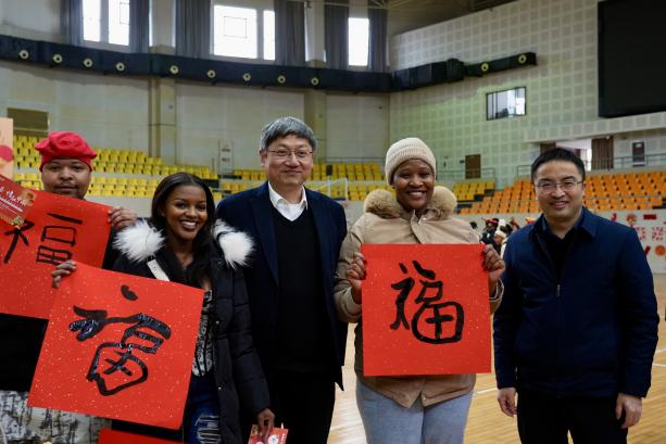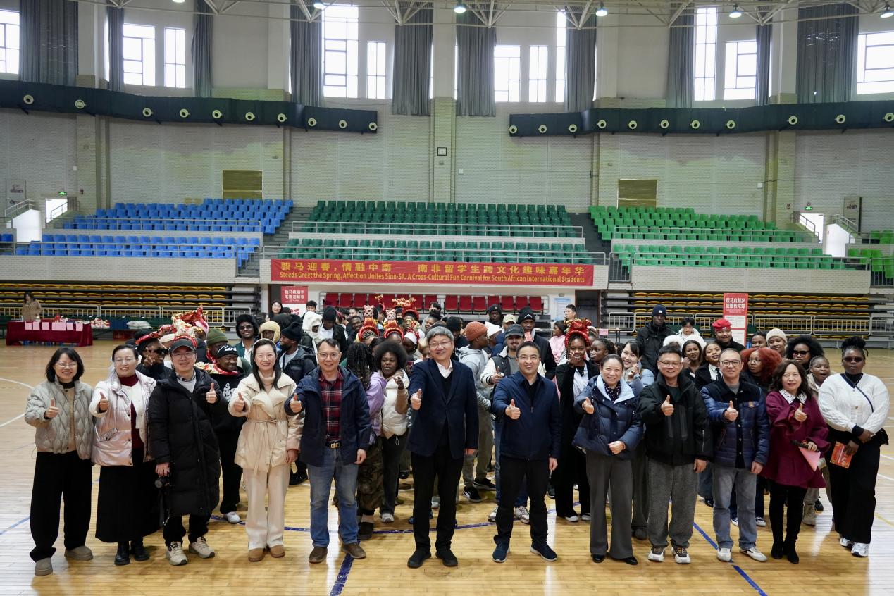 1月29日下午,我校成功举办“骏马迎春,情融中南”南非留学生新春游园会,促进中南文化交流,共庆中国农历新年。党委书记范朝辉现场为留学生送上新春祝福。党委委员、副校长潘建峰,相关职能部门和二级学院教师、志愿者及91名在校南非学历留学生欢聚一堂,共迎新春。