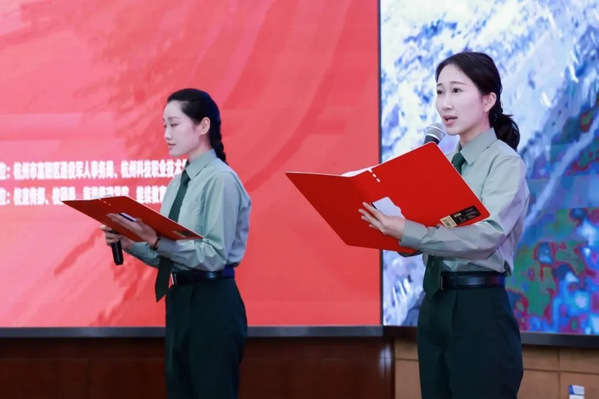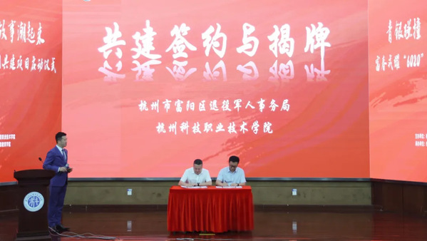 在全场嘉宾的见证下,富阳区退役军人事务局与我校签订了共建协议,并共同为红色宣讲团揭牌。这标志着双方将充分发挥各自优势,整合资源,共同打造独具特色的红色宣讲品牌。