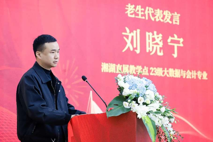 继续教育学院主讲教师代表胡桐春教授,在籍老生代表2023级大数据与会计专业刘晓宁同学,2025级新生代表、杭州市五一劳动奖章获得者李大梦同学分别在典礼上作了精彩发言。
