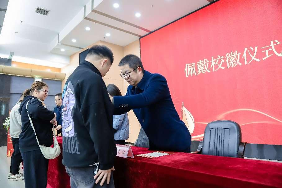 典礼仪式上,校领导和继续教育学院相关负责人为学生代表们佩戴了校徽。