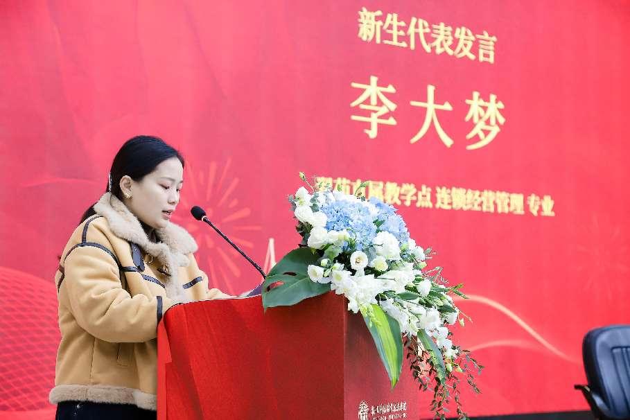 典礼在庄严的国歌声中拉开帷幕。金徐伟在典礼上致辞,代表学校对2025级新同学的加入表示欢迎和祝贺,向一直以来关心和支持学校发展的校外教学站点师生表示感谢。金徐伟详细介绍了学校的发展历程和基本情况,并对2025级的同学们提出了四点殷切希望:一是锚定目标、明确方向;二是妥善克服工学矛盾,学会自主学习;三是坚持学以致用,在工作中深化对知识的理解;四是积极参与学校活动,与老师同学密切互动。