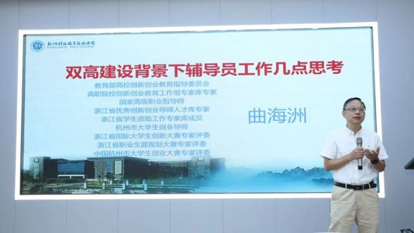 开班仪式结束后,曲海洲处长以辅导员角色定位与职责、校友资源维护与长期职业跟踪为主题为学员们上了第一课。本次培训为期4天,除了校内招生就业处、科研处相关领导分享交流,还邀请了杭州师范大学、金华职业技术大学、杭州职业技术大学等高校的专家和辅导员共同授课,同时还将赴杭州师范大学科技园、未来科技城城市展馆、阿里巴巴集团等单位进行现场教学与考察交流。