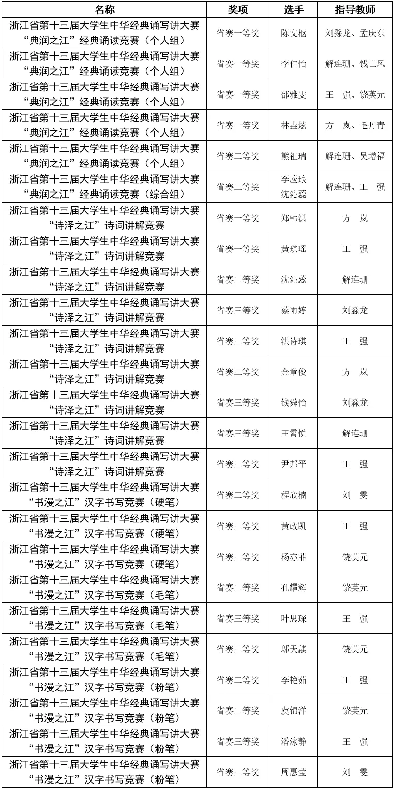“典润之江”“诗泽之江”“书漫之江”学科竞赛指导成绩