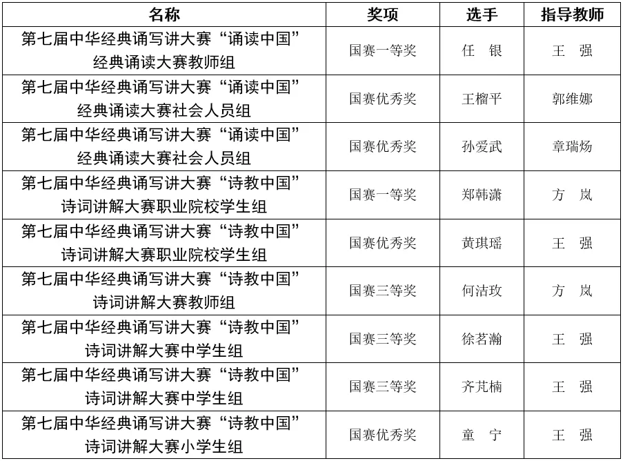 近日,由教育部和国家语委主办的第七届中华经典诵写讲大赛获奖名单正式公布。杭州市共有56件经典诵读和诗词讲解作品荣获国赛奖项,其中包括杭州科技职业技术学院“经典教育”团队指导的9件作品,展现了学校作为浙江省语言文字推广基地在推动中华优秀文化传承方面取得的积极成效。