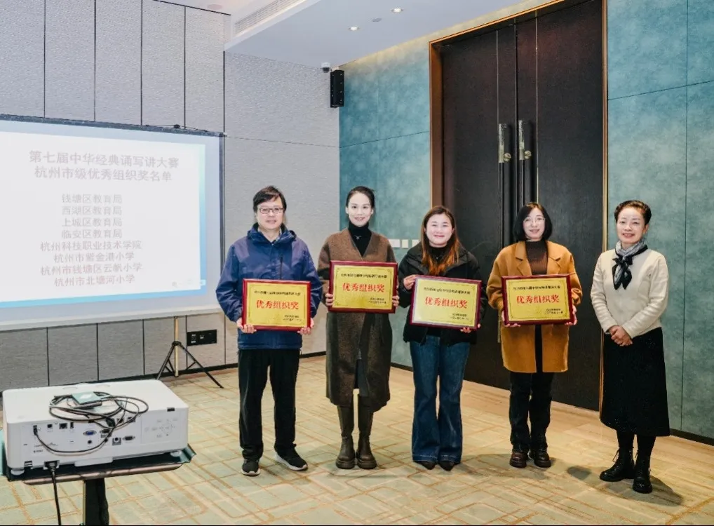 杭州科技职业技术学院作为浙江省语言文字推广基地和杭州市语言文字培训中心,高度重视并具体承办市级大赛的组织工作。学校从面向13个区县市开展大赛指引工作做起,在初赛环节组织省内外专家公平公正评审,并在三层晋级赛制的每一轮反复核查参赛信息,确保规范有序。历经九个月的努力,学校圆满完成各项组织任务。其中,王强老师荣获全国第七届中华经典诵写讲大赛优秀组织个人奖,学校也获得第七届中华经典诵写讲大赛杭州市级比赛优秀组织奖。