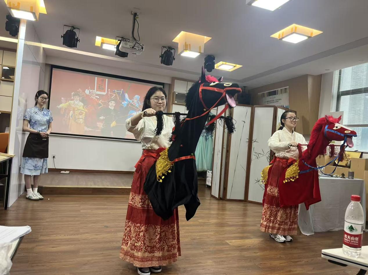 在旅游赛道的角逐中,参赛团队围绕赣籍千岛湖移民后代返乡这一温情主线,精心打造了《千岛归情 浙里寻根》主题展示,将地域文化与旅游服务的专业性深度融合。备赛阶段,团队赴千岛湖开展研学,主动登门拜访非遗传承人,系统学习国家级非物质文化遗产——淳安跳竹马技艺。队员们沉心钻研道具制作、步法技巧与民俗内涵,将跳竹马的刚劲灵动与移民返乡的温情叙事巧妙结合,让古老非遗在旅游场景中焕发新生。第一次参加大赛的魏佳怡同学表示,这次经历帮助她突破了自我局限,学会了合理分配时间、高效协作配合,同时也更清晰地认识到自身不足。“它不仅是一次比赛,更是成长路上的重要一课”。最终该项目成功斩获该赛道金奖。