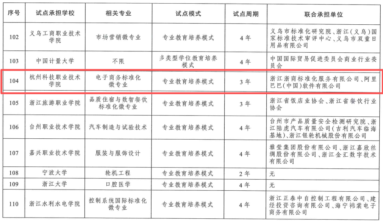近日,国家市场监督管理总局、教育部联合印发《关于公布专业与标准化教育融合试点名单的通知》,全国共281个项目入选首批试点。杭州科技职业技术学院(以下简称“杭科院”)“电子商务标准化微专业”成功入选,成为全国电子商务专业仅有的两个试点项目之一。该试点项目采用专业教育培养模式,周期为3年,标志着杭科院在“专业+标准化”复合型人才培养方面取得重要突破。