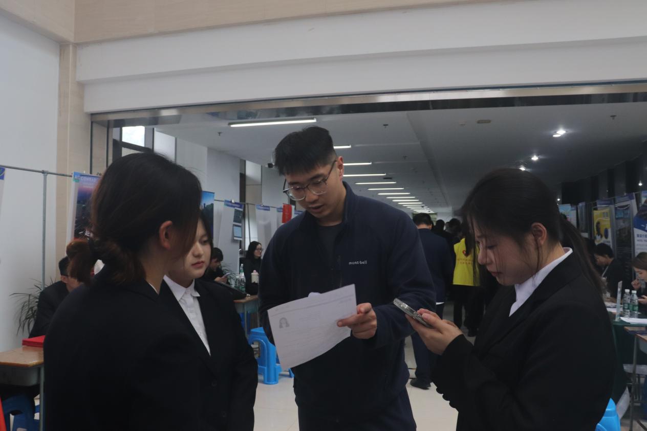 毕业生们身着干练职业装,携带精心准备的简历、作品集及技能展示材料,精神饱满地与企业代表面对面沟通交流,充分展现了旅游管理学院学子的专业素养和青春风采。研学2403班学生都依茹分享道:“双选会让我直观感受到了行业转型的趋势,也清晰了自身的能力短板。很荣幸能当场获得心仪企业的实习机会,未来我将不断提升专业技能,扎实积累实践经验,努力成长为复合型文旅人才,为行业高质量发展贡献力量。”