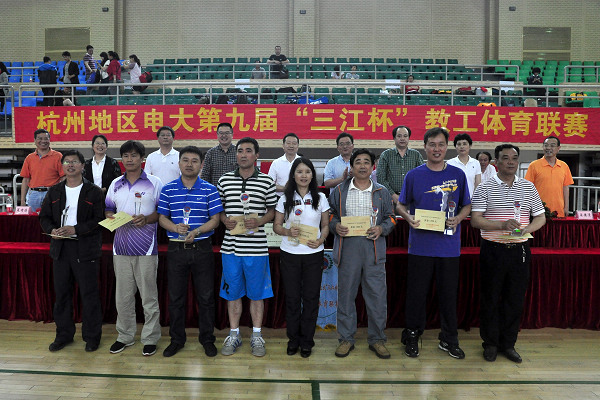 “三江杯”教工体育联赛自2004年6月由我校发起,每年举办一次,已经成为杭州地区电大的一项传统赛事,深受广大教职工的欢迎。联赛由我校和七区(市、县)电大轮流主办,到今年正好完成了一个轮回。本届大赛为此特意颁发了20个“突出贡献奖”,感谢那些为赛事的顺利举行付出辛勤汗水的主要领导和人员。