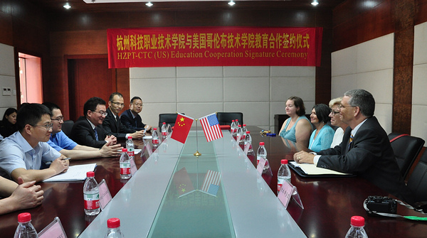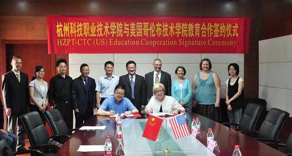 5月28日上午,由副校长林·斯多里(Linn Storey)率领的美国哥伦布技术学院一行四人对我校进行了工作访问。双方签署了“哥伦布技术学院与杭州科技职业技术学院合作协议备忘录”