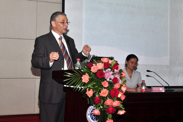 签约仪式后,美国哥伦布技术学院国际教育扩展部主任伊恩·邦德博士在陶研馆报告厅作了有关领导潜质的讲座。伊恩·邦德博士通过旁征博引、自我展示以及与听众的良好互动,阐明了要成为雄鹰(Eagle)必须具备的DANIELT(素质):Dependable(诚实可靠)、Attitude(态度端正)、Nourisher(为周围的人提供支持)、Influencer(具备一定影响力)、Energetic(精力充沛)、Loyalty(忠诚)、Thinker(善于思考)。演讲结束后,听讲学生积极发言提问,与伊恩·邦德博士就演讲的具体内容进行了进一步探讨。