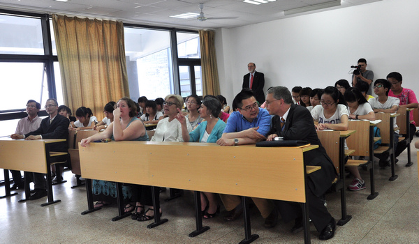 当天参加签字仪式和列席讲座的有工商学院、旅游学院、机电学院、教务处、学生处、国际合作处的负责人以及在我校执教了近一个学期的外教Amber Tidwell。