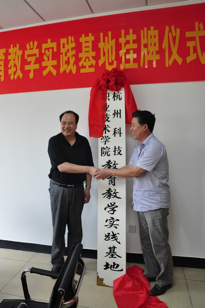6月5日,我校在黄公望村举行挂牌仪式,正式在该村成立了“杭州科技职业技术学院教育教学实践基地”。根据共建协议,学校将依托黄公望村开展大学生社会实践、专业教育教学实践、科技下乡和基层党组织合作建设等共建共享活动。富阳市运动休闲办公室(旅游局)赵卫中副主任,富阳市教育局缪一春科长,富阳市东洲街道办事处杨建华副主任,校党委副书记张小红,副校长何树贵,纪委书记王树霞及黄公望村村委会全体成员出席了仪式。校办公室、宣传部,教务处,社会合作部,艺术学院,旅游学院,团委负责人与相关专业教师参加仪式并作对口交流。仪式由黄公望村村委会主任王忠升主持。