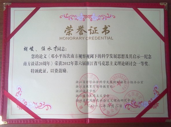 6月1日至6月3日,第六届浙江省马克思主义研讨会在舟山浙江海洋学院隆重召开。我校公共教学部胡峻老师和任水才教授合作的《邓小平历次南方视察视域下的科学发展思想及其启示》一文获2012年第六届浙江省马克思主义理论研讨会一等奖。这是高职院校的讲师第一次获得省内马克思主义理论学科领域最高奖项。胡峻老师应邀做了大会交流发言,介绍了获奖文章的主要观点和创新之处。