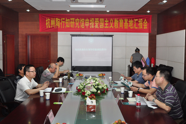郦华才书记介绍了杭州陶行知研究馆的风格特点、馆藏内容和陶行知先生与我校的渊源,并就陶研馆申报杭州市爱国主义教育基地的工作情况进行了汇报。阙沛霖副会长汇报了原湘湖师范陶行知纪念馆建馆的历史及其在宣传陶行知教育思想方面所取得的成果。在听取汇报以后,陈波副处长充分肯定了陶行知研究馆的建设成果,认为展出的图片、书集等内容比较丰富。他建议陶行知研究馆今后能采用现代化的声光电方式来展呈馆藏物品。副调研员祈伟建表示,陶行知教育思想是我校办学的灵魂,希望学校加强与富阳市其他爱国主义教育基地的联系,进一步扩大杭州陶行知研究馆的社会影响。