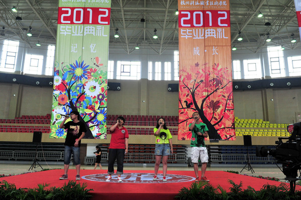 6月13日上午,我校2012届毕业典礼在文体中心体育馆隆重举行。校领导为我校第一批高职毕业生代表颁发了毕业证书,标志着杭科院这所具有将近百年光辉历史的学校,真正实现了向高职教育的转型升级。