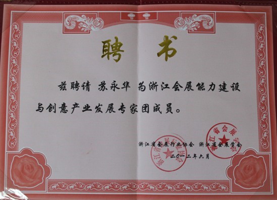 6月13日,浙江会展能力建设与创意产业发展专家团成立,并在浙江省人民大会堂举行聘任仪式,我校旅游学院苏永华老师被聘为浙江会展能力建设与创意产业发展专家团成员。