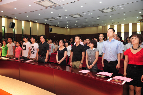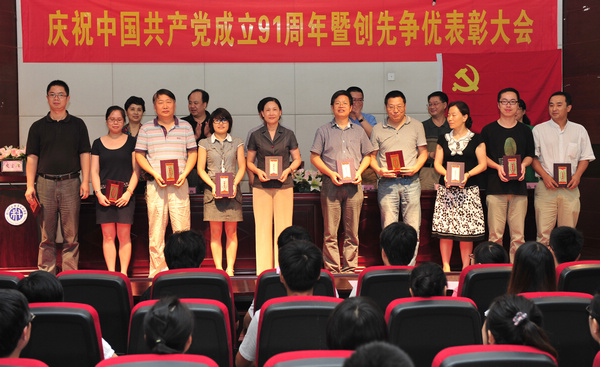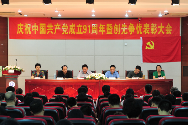 6月28日上午,我校“庆祝中国共产党成立九十一周年暨创先争优表彰大会”在高桥校区陶研馆报告厅隆重举行。全体学校领导班子成员出席大会。各党总支书记、党支部书记、受表彰的先进个人、新发展的党员、教工与学生党员代表、入党积极分子代表等近150人参加了大会。