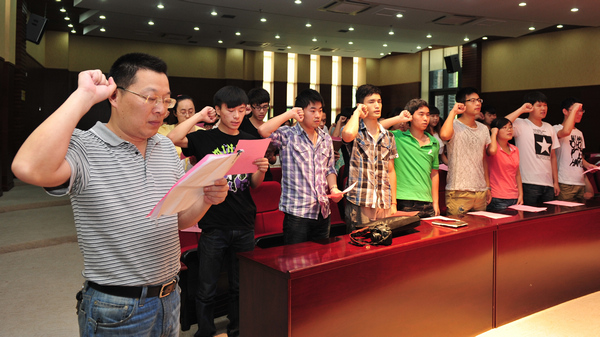 先进党支部代表直属第二党总支部第一支部书记卢杰骅,优秀党员代表苗凯分别在会上作了发言。大会还举行了新党员入党宣誓仪式。41名学生和教工新党员代表在校党委组织部部长陈泉淼的领誓下,面向党旗光荣宣誓。