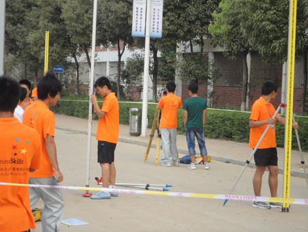 自从取得本次大赛参赛资格开始,城建学院高度重视测绘技能大赛的组织和准备工作,以工程测量专业教师为主,组建了测绘技能大赛辅导团队,并制定了具有针对性的技能培训计划。指导教师、参赛队员放弃节假日的休息时间,认真实施既定的训练方案,白天训练数字测图和水准测量,晚上培训计算器编程,日夜奋战在备战第一线。