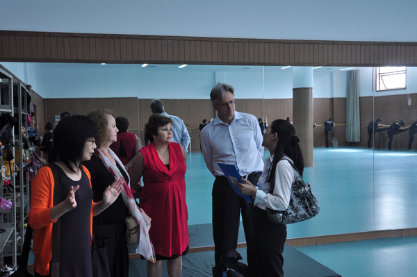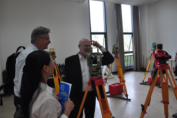 访问团到校后,首先参观了城建学院的实训设施, 包括4号实训楼,建筑材料陈列室,学生自主制图室以及测量实训室;随后到文体中心舞蹈室观摩了教育学院李丰意老师的民族舞蹈课,李老师的舞蹈课给访问团留下了深刻的印象。