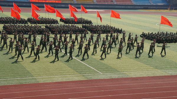 经过14天的军训洗礼,同学们个个英姿飒爽,精神振奋,军容严整。9时,傅勤校长在部队领导的陪同下检阅了队伍,同学们高呼“为人民服务”的口号,响亮的声音在田径场上空久久回荡。此次军训会操充分展示了我校青年学子朝气蓬勃、积极向上的精神风貌。