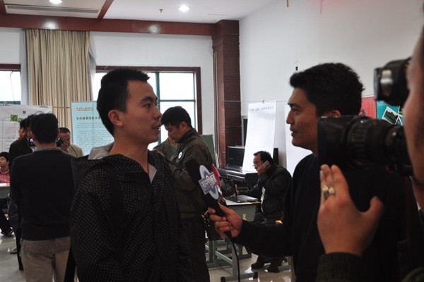 杭州市市委副秘书长郭禾阳与傅勤校长在招聘会现场
