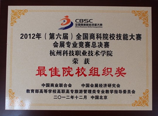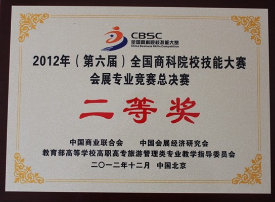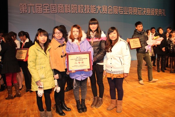 2012年12月2日,由中国商业联合会、教育部高等学校高职高专旅游管理类专业教学指导委员会联合主办的“2012年(第六届)全国商科院校技能大赛会展专业竞赛”在北京圆满落幕。我校旅游学院会展专业获得本次大赛会展项目调研组二等奖一项,会展项目策划组二等奖及三等奖各一项,同时获得最佳院校组织奖。苏永华、钱世凤、许骏杰、郑秀娟、周晓音五位老师被授予优秀指导教师称号,12名获奖同学被推荐遴选为中国商业联合会未来商界精英后备人才库成员。