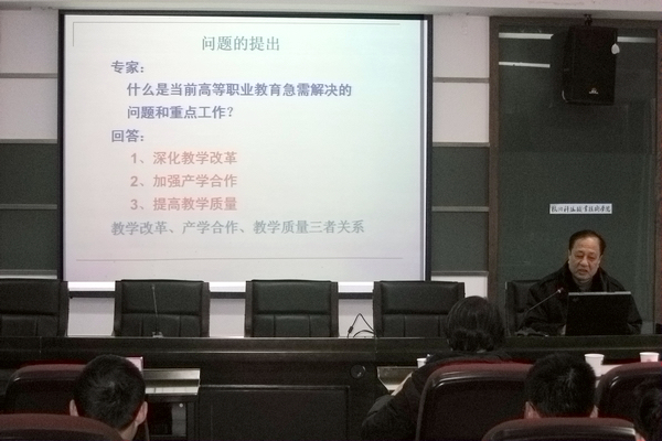 为进一步了解当前高职课程教学改革的动态信息,12月18日,信息工程学院特邀教育部电子信息教学指导委员会主任高林教授和秘书长鲍洁教授来校作题为《当前高职课程设计与教学改革急需解决的问题》专题讲座。讲座由教务处副处长马永良主持,来自信息工程学院、相关学院及教务处四十多名教师和教学管理人员参加。