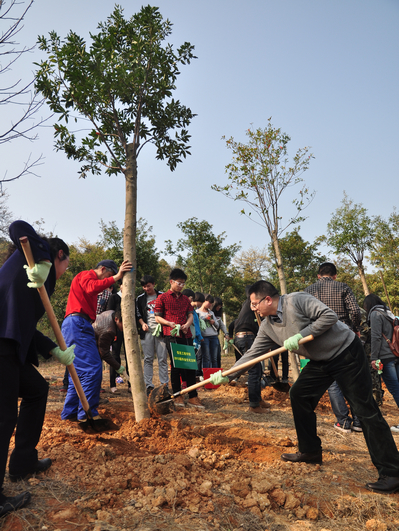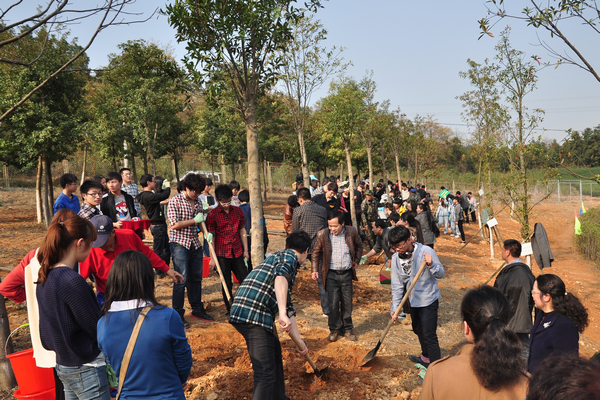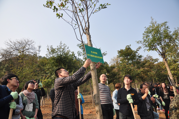 开幕仪式结束后,出席开幕仪式的全体人员移步至校园东北边的池塘旁亲自动手植树,为校园增添一片绿色,并挂上“2013届毕业生纪念树”的纪念牌。
