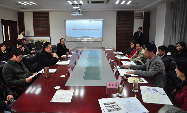 3月22日,杭州市科协副主席姚树列、市政协学联委主任丁国才、市政协学联委副主任吴卫星、市政协学教科文卫体委副主任吴持瑛,及科协部分委员一行23人来我校参观考察。校长谢列卫主持召开座谈会,校党委副书记张小红、副校长何树贵、副校长徐红及相关部门领导参加会议。