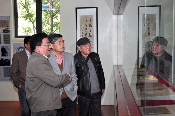 沈者寿在校领导陪同下参观陶行知研究馆