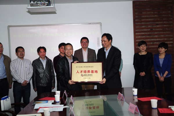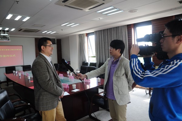 当天双方正式签署了校企合作协议并互授铜牌。签约仪式后,谢列卫校长接受了富阳电视台的专访。