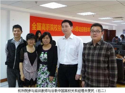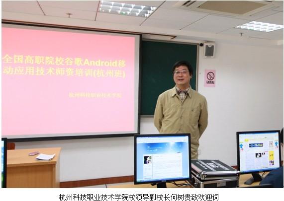 4月25日-4月28日,由谷歌信息技术(中国)有限公司和教育部电子信息类教指委联合主办、杭州科技职业技术学院承办的“谷歌Android移动应用开发技术”师资培训班在翠苑校区顺利进行。全国高等院校计算机基础教育研究会高职高专委员会主任高林、秘书长鲍洁,我校副校长何树贵,信息工程学院院长杨悦梅、副院长吴龙和全体参训老师参加了开班仪式。通过本次培训,信息工程学院在加强校企之间的沟通与合作,加强“双师型”师资队伍建设,加强服务地方电子信息类专业技术人才培养所需方面作出了有益尝试。
