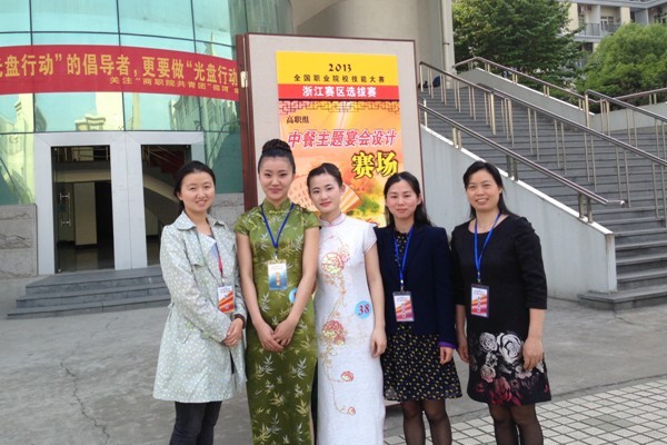 4月28日,由浙江省教育厅举办的2013年浙江省高职高专院校技能大赛暨全国职业院校技能大赛选拔赛“中餐主题宴会设计”竞赛在浙江商业职业技术学院举行。我校旅游学院酒店管理专业2011级潘筱瑜、崔弯弯两位同学在吴琼莉、郑菊花、姚蓝萍老师的带领指导下参加了比赛。