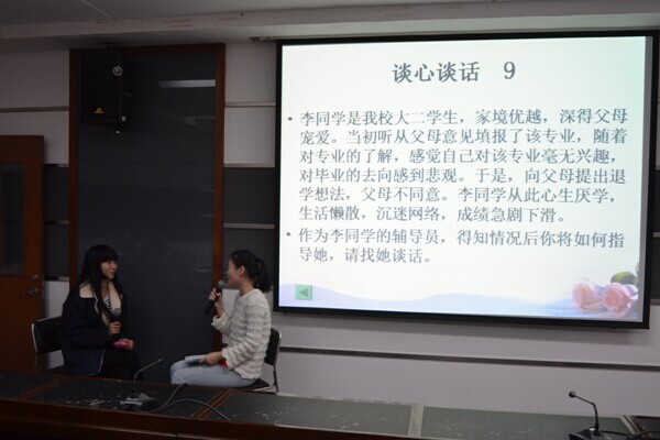 11月26日下午,由校工会主办、校学生处承办的第三届辅导员职业技能竞赛决赛在综合楼2109会议室举行,来自学生处、各二级学院的8名辅导员参加了本次大赛。副校长徐红,学生处处长汪灿祥、副处长周俊炯,招生就业处处长曲海洲及各二级学院相关负责人应邀担任大赛评委,各学院的辅导员及学生代表到现场观摩比赛。