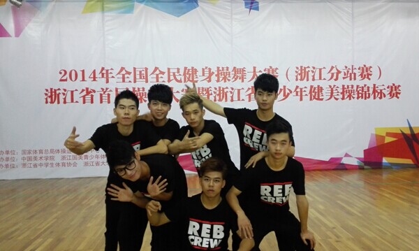 11月21日,由国家体育总局体操运动管理中心主办的2014年全国全民健身操舞大赛浙江分站赛在中国美术学院隆重开幕, 由我校艺术学院刘潘潘、项伟强、徐呈坤,机电工程学院陈海平、周长清、施云龙,旅游学院叶艾进7名学生组成的街舞团队获得大赛第六名。