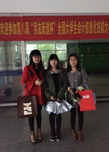 2014年11月29日,第八届“用友杯”全国大学生会计信息化技能大赛全国总决赛在浙江经济职业学院大学落下帷幕,我校由工商学院学生韩李迪、高雨怡、贾晓萍、罗梦丹组成的代表队在赵建新老师的指导下荣获了全国团体三等奖和四项个人单项奖。