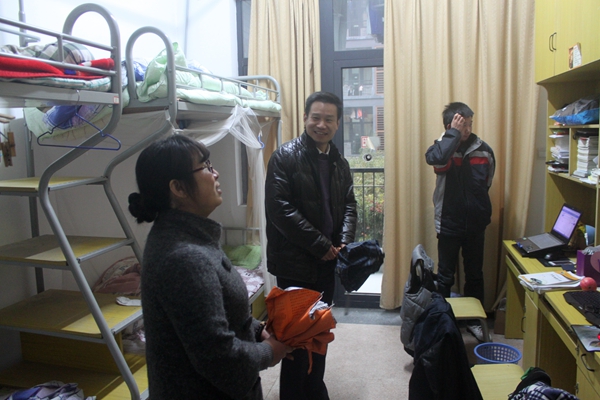 午餐后,高云飞走访了学生公寓竹园寝室,查看了寝室卫生,询问了同学们的业余生活情况,并祝愿同学们在期末考试中取得好成绩。