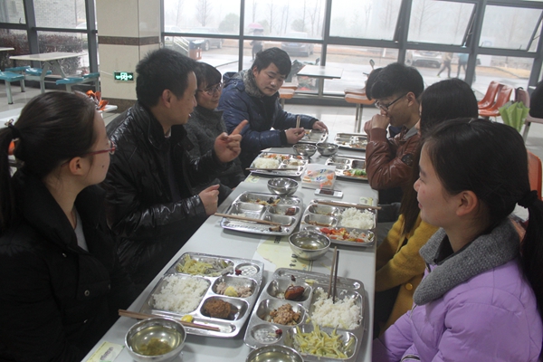 1月6日中午,校纪委书记高云飞在图书信息中心主任蔡吸礼的陪同下,与机电工程学院、信息工程学院、旅游学院的6名同学在食堂一楼餐厅共进午餐。