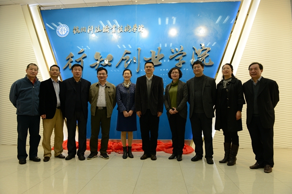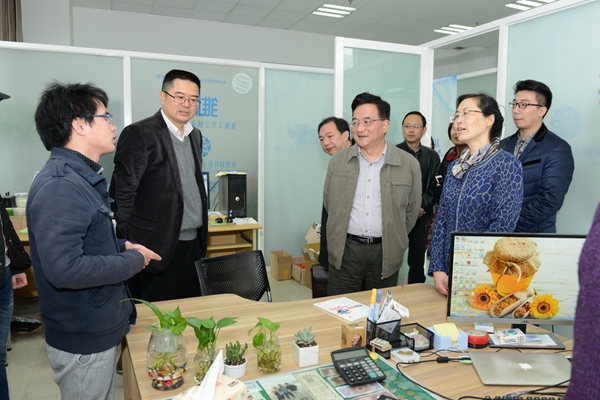 在调研中,陈红英副市长一行深入实地,先后考察了我校城建学院校内实训基地、实训室,学生创新创业工作室(创业园),入驻我校创业园的孵化器科技企业,在创业园一楼为我校“行知创业学院”揭牌。