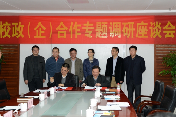 在调研座谈会上,我校与市建委现场签定了战略合作协议,富阳区授予了我校“富阳区科技企业孵化器”牌子。