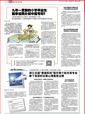 2015年3月20日 《杭州日报》 A14 教育新闻版