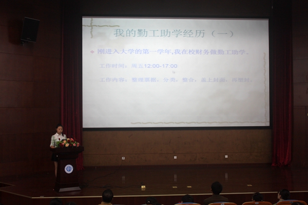 秦星老师介绍了我校这几年勤工助学工作开展的有关情况;图书信息中心徐慧芳、艺术设计学院汪利两位老师分别代表校内用工部门在会上做交流发言;旅游学院和机电工程学院的蒋一帆、秦芳芳两位同学作为学生代表分享了各自参加勤工助学的心得体会。