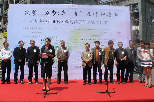 3月31日中午,我校第五届公寓文化节开幕式在食堂门口举行,副校长徐红出席开幕式,学校相关职能部门负责人、二级学院党总支书记参加仪式。